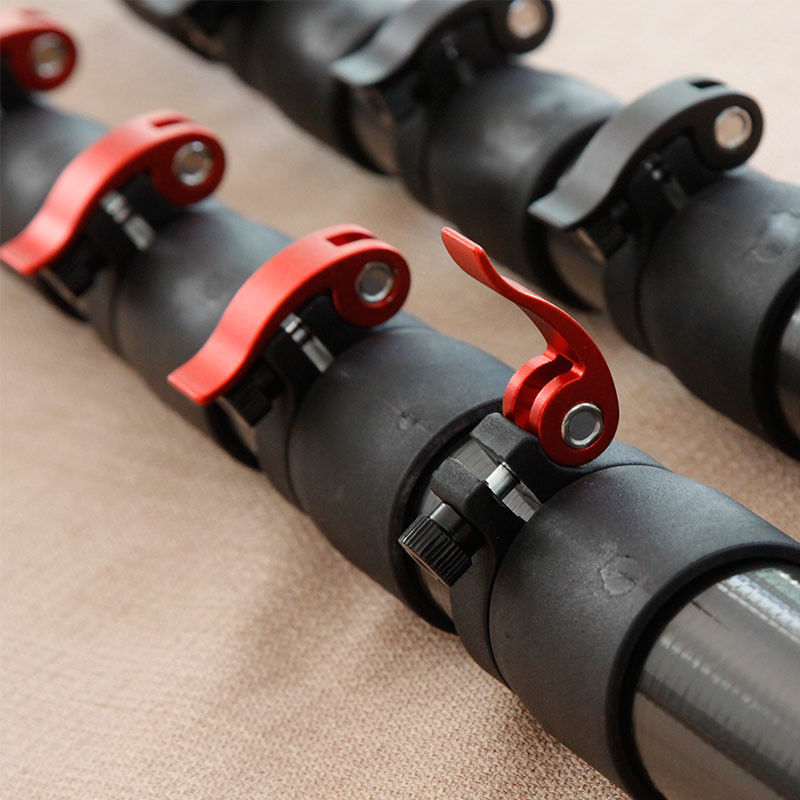 أنابيب تلسكوبية قوية وخفيفة الوزن ملفوفة بألياف الكربون مع مشابك سريعة الإفراج. قطب من الألياف الكربونية بطول 12 مترًا يزن 2.4 كجم (يشمل القطب والمشابك)ويمكن إغلاق القطب إلى طول قصير، والتي عادة ما تكون أقصر من 2.5 متر لسهولة النقل والتخزين.