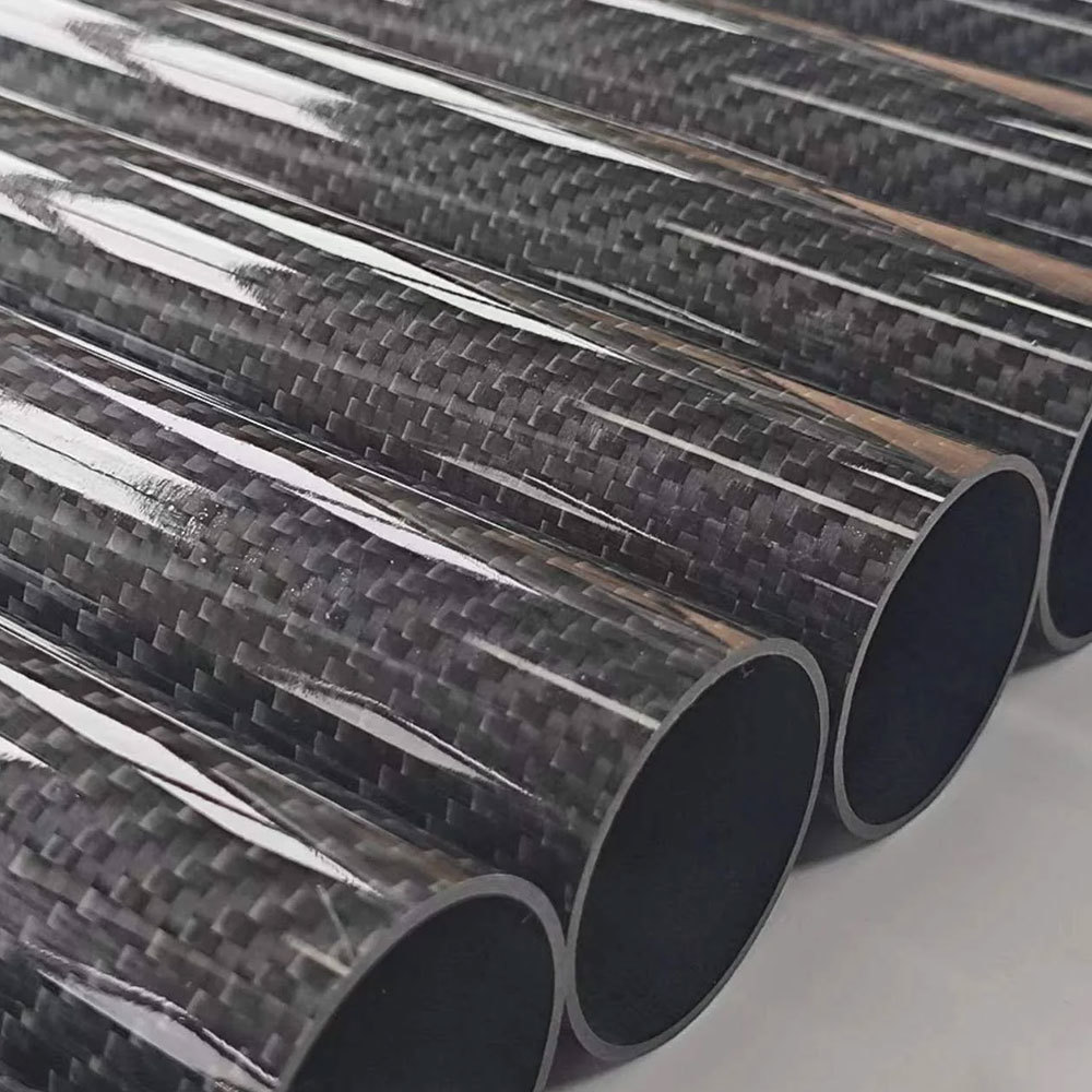 أنابيب ألياف الكربون هي مواد مركبة متقدمة تظهر صلابة كبيرة ونسبة قوة إلى وزن عالية. تم تصنيع هذه الأنابيب باستخدام نسيج ألياف الكربون عالي الجودة، وهي ملفوفة مسبقًا لتعزيز الاتساق والقوة والمتانة. تضمن عملية التصنيع الخاصة بها نسبة مثالية من الألياف إلى الراتنج، مما يوفر خصائص ميكانيكية فائقة وأداءً عاليًا. تتميز بلمسة نهائية لامعة، مما يؤدي إلى مظهر أنيق وسلس. إنها مثالية لمجموعة من التطبيقات الهيكلية والتجميلية المتطلبة: