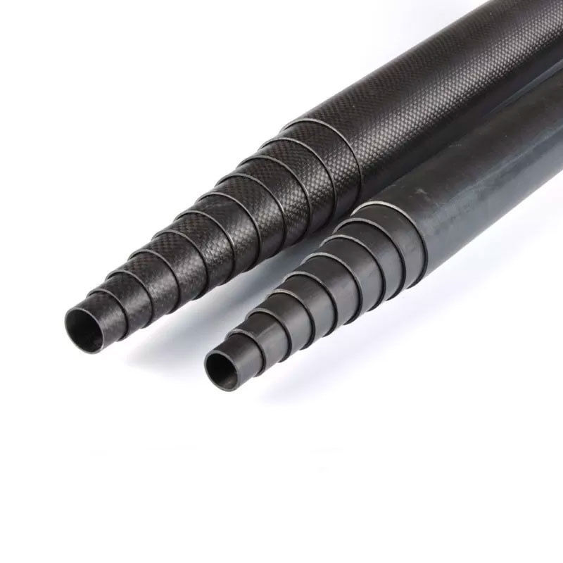 Carbon fiber tube for telescopic pole, made entirely of high-quality carbon fiber. It is real carbon fiber, pressed and cured in the oven. With constant thickness, very high hardness, and very little weight.